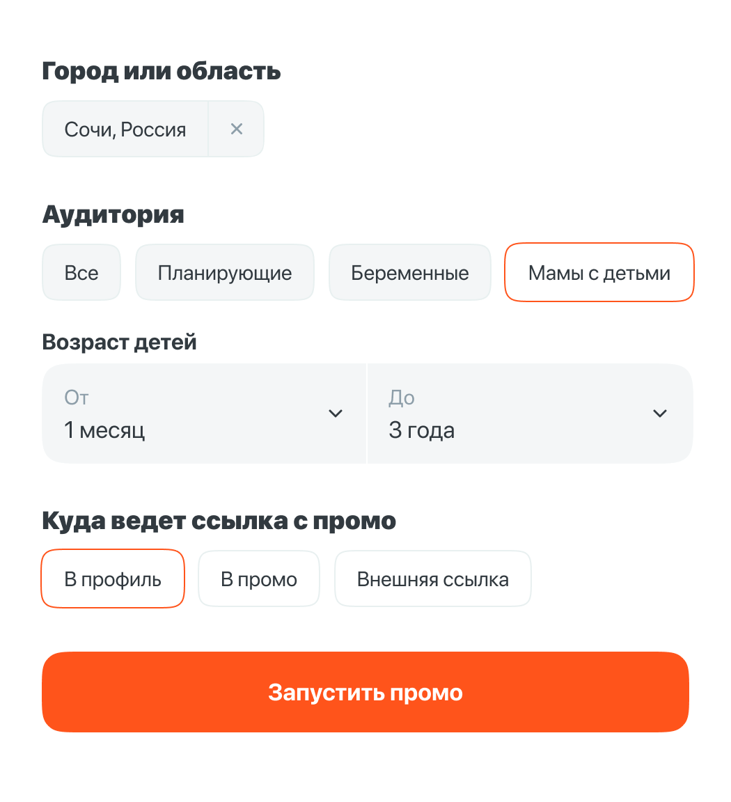 Показывайте объявление только целевой аудитории, например: мамы из Сочи с детьми в возрасте от 0 до 3 лет